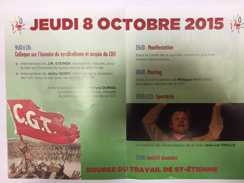 CI-DESSOUS, VOUS POURREZ ÉGALEMENT RETROUVER LE PROGRAMME DES INITIATIVES ORGANISÉES PAR L’UD CGT 42 ET L’INSTITUT D’HISTOIRE SOCIALE CGT LOIRE SUR LA JOURNÉE DU 8 OCTOBRE: